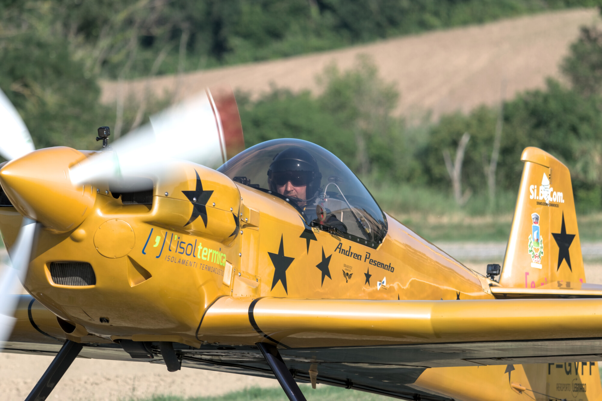 Un’estensione del mio divertimento a chi mi osserva e mi dedica la sua attenzione. La gioia di vedere negli occhi del pubblico la sorpresa, il brivido, la commozione: ecco cosa si accende nel mio cuore quando atterro e apro il cupolino del mio aereo ed ecco perché questo logo.